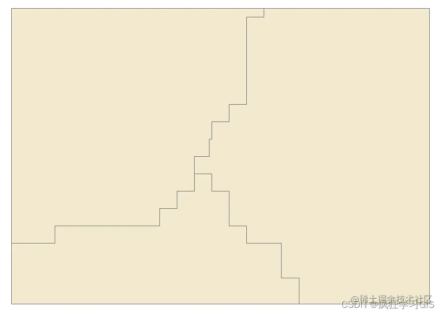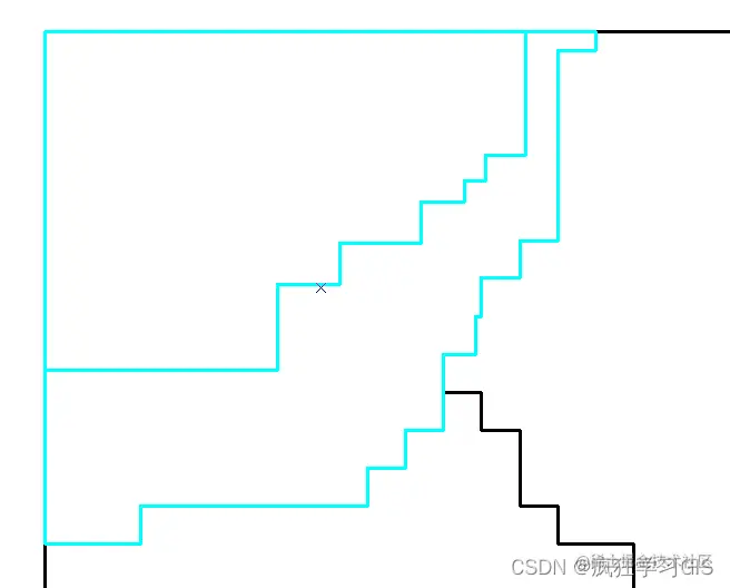 首先,现有如下图所示的一个矢量面要素;我们希望对其左上角的这一部分加以划分,将这一部分变为2个区域(也就是整个矢量面要素由原本的3个区域变为4个区域)。