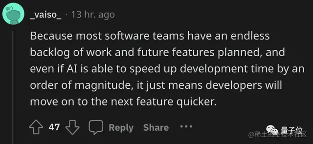 即使AI能把开发时间缩短一个数量级,也只是意味着程序员将更快处理下一个工作。