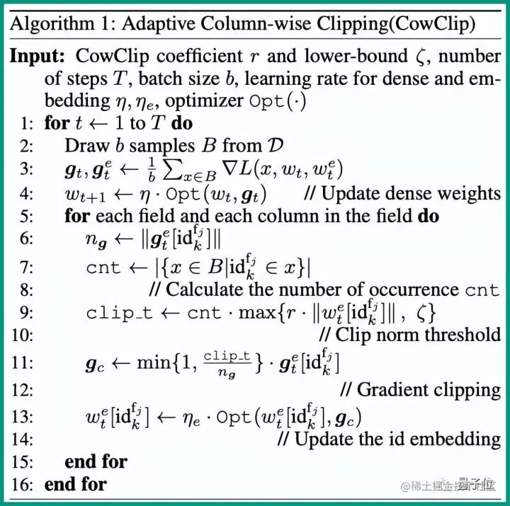 通过他们提出的CowClip,可以简单有效扩展批大小。