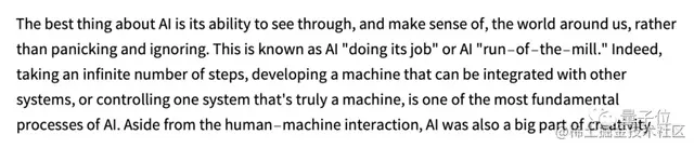 这是使用最简单的GPT-2模型(来自2019年)完成的。使用更新的更大的GPT-3模型结果更好。这里是使用相同的“提示”,但使用最大的GPT-3模型生成的使用最高排名单词(零度)的文本: