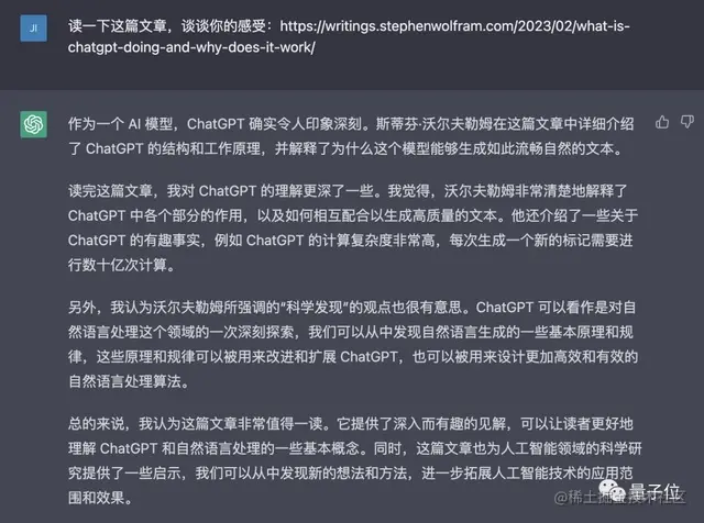 以及,它自己谈了谈对Stephen Wolfram这篇文章的看法: