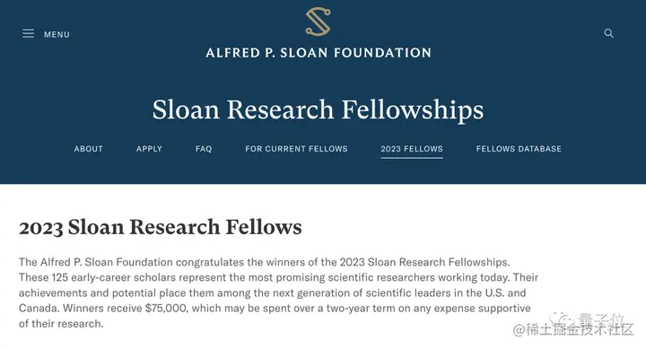 斯隆研究奖,素来有“诺奖风向标”的称号,获得这个奖项的研究人员,将得到为期两年的75000美元的奖金。
