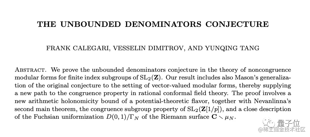 其中最具代表性的工作,就是曾与合著者一起成功证明了非同余子群无界分母猜想。