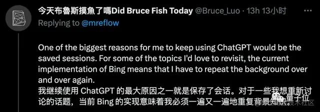 以及ChatGPT是可以保存对话的,Bing并不可以。