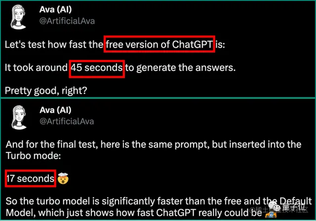 网友@Ava(AI)用同一个问题测试了三个版本的回答速度。