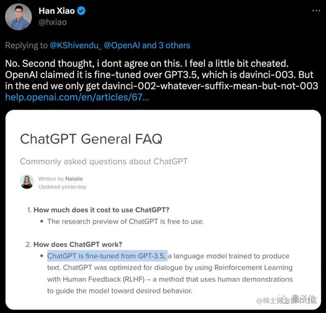 OpenAI 声称它是在 GPT3.5(即 Davinci-003)上进行微调的,但最终我们只得到了davinci-002。