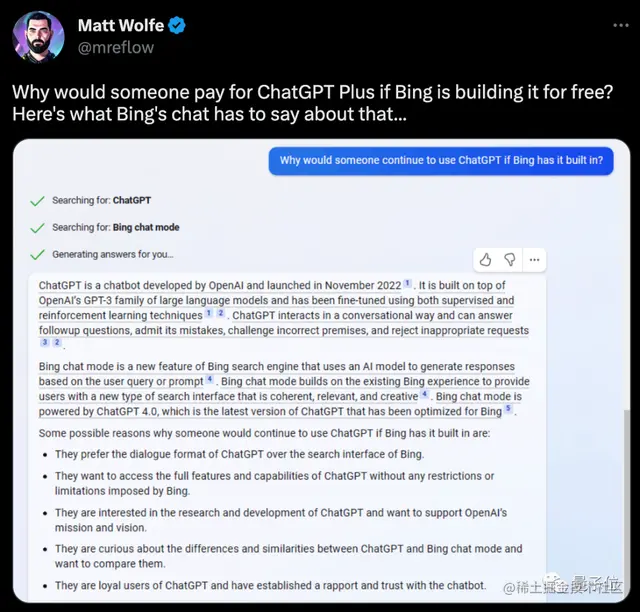 以及Bing不也接入ChatGPT了,如果Bing是免费使用,还有必要在ChatGPT这边付费吗?
