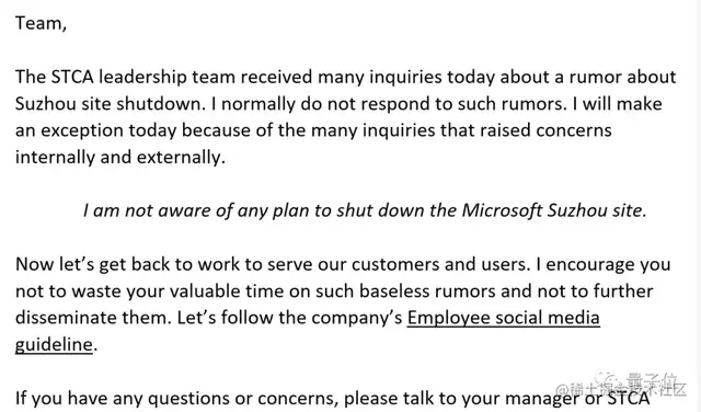 微软高管发内部信辟谣了网传“微软苏州被一锅端”的消息。