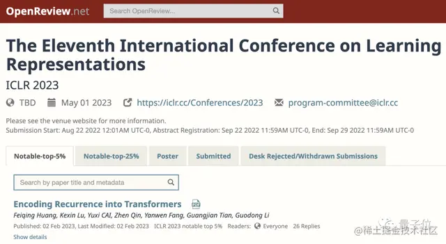 官网显示,Notable-top-5%论文包含了Transformer、扩散模型等主题。