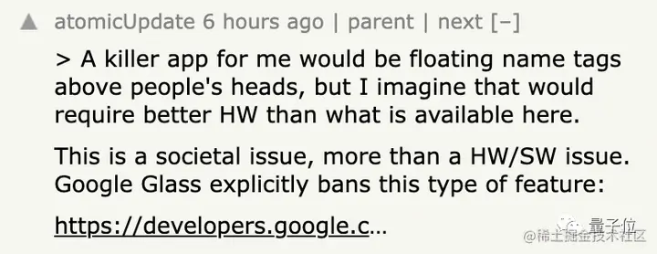也有网友附和,在谷歌眼镜之后,禁止使用面部识别技术已经严重影响到了AR设备在实际生活中的应用。
