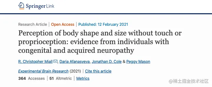 由美国和英国的科学家组成的一个研究小组最近对两个「没有触觉」的人的神经系统状况进行了一项开创性的研究——《无触觉或本体感觉对身体形状和大小的感知: 来自先天性和后天性神经系统疾病患者的证据》。