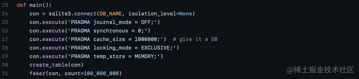 作者再次重写了Python脚本,这次包括了微调的SQLite参数,这次带来了巨大的提升,运行时间大幅减少: