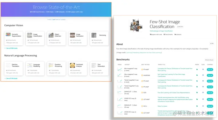 Paper With Code 是一个非常棒的网站,它上面集合了各个领域的基准库(benchmark)和论文代码。