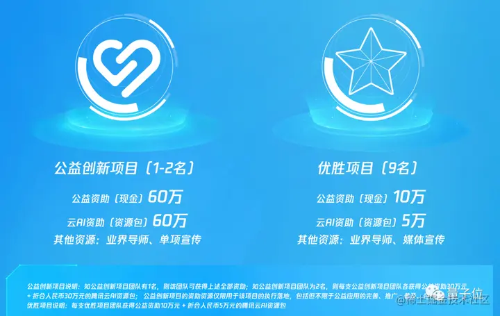 优胜项目,将获得10万现金公益资助,5万云AI资助。