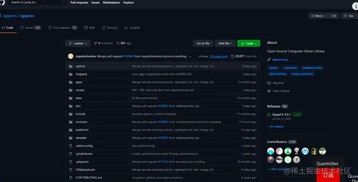 下面是他用到的Opencv库地址: