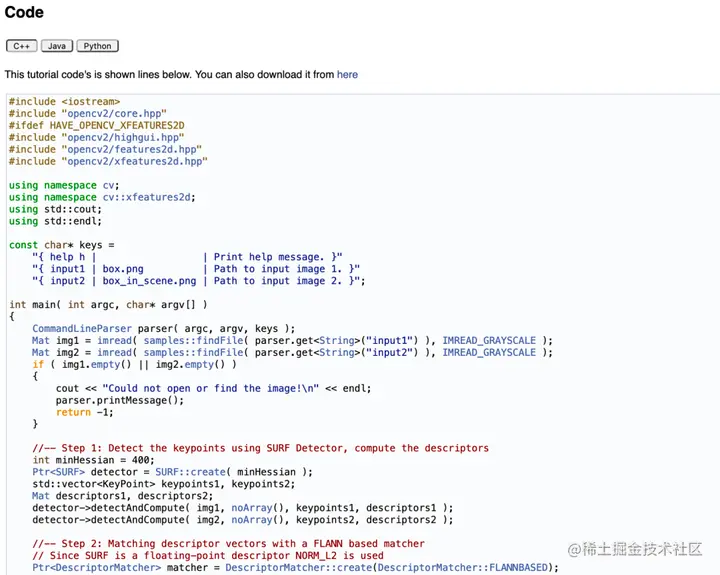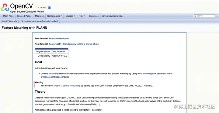 接着,他在opencv上发现了「特征匹配」的文档说明: