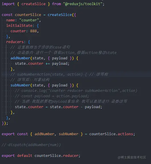 我们先对counter的reducer进行重构: 通过createSlice****创建一个slice