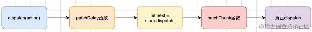 - 这样就意味着我们已经直接修改了dispatch的调用过程