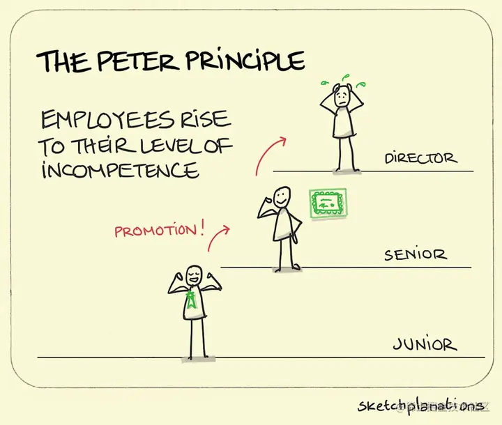 在等级制度中,每个员工都倾向于升到他们不能胜任的级别。因此,随着时间的推移,每个岗位都有可能被不称职的员工占据。”