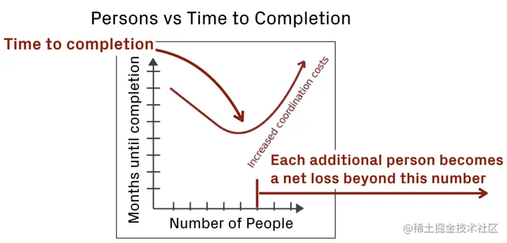 当你意识到你没有取得预期的进展,并且管理层试图重新分配人力资源时,那么项目不仅会更加推迟,而且最后很可能会交付一个更加脆弱、更复杂的产品。