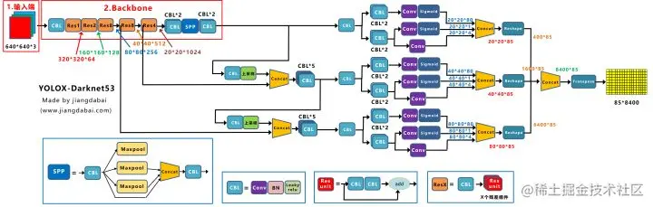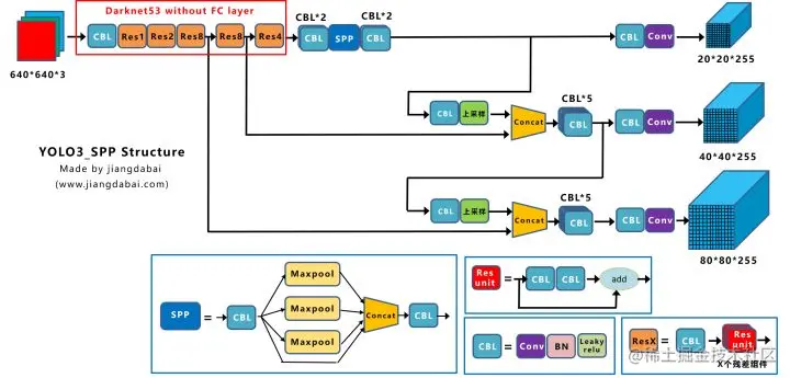 不过在Yolox系列中的,Yolox-Darknet53模型,采用的Baseline基准网络,采用的并不是Yolov3版本,而是改进后的Yolov3_spp版本。