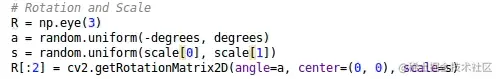 在Mosaic数据增强中,代码Yolox/data/data_augment.py中的random_perspective函数,生成仿射变换矩阵时,对于图片的缩放系数,会生成一个随机值。