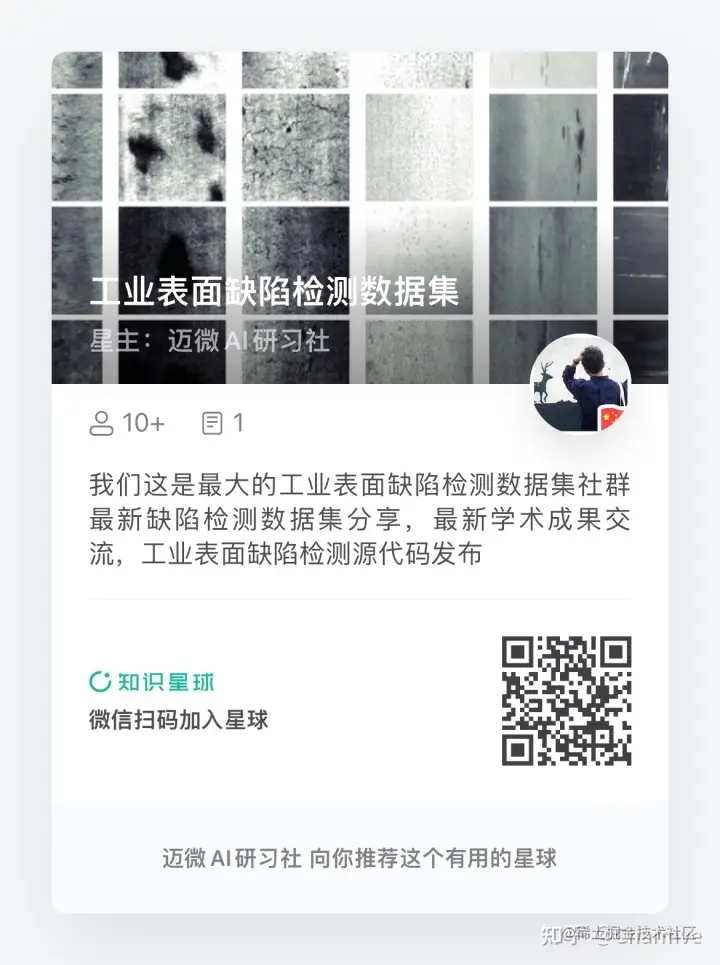 工业表面缺陷检测数据集知识星球终于开了,微信群会保留,但主要的资源会在这里分享和交流。