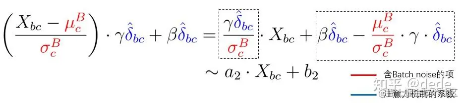 如果从上公式来看,含有batch noise的项(红色),似乎都有注意力机制的系数 (蓝色)相作用。有理由猜想,注意力机制的系数