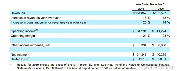 △ 2020财年,谷歌的综合财务业绩