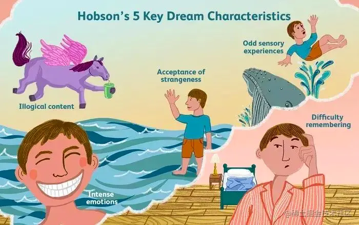 然后,大脑在醒来时试图将意义和叙事结构编织到这种活动中,从而催生了梦想。