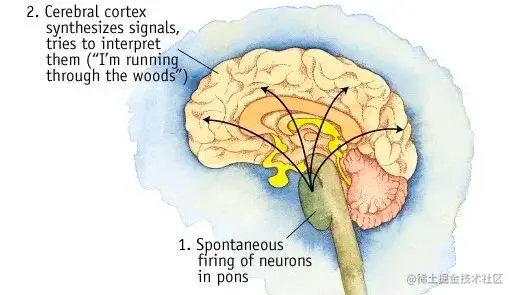 前脑试图将脑干激活产生的随机信号赋予意义,从而产生连贯的梦。
