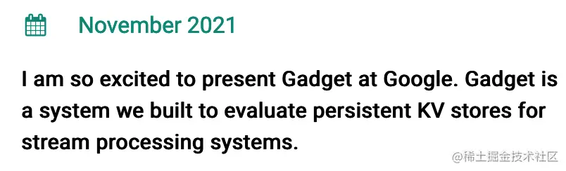 所以我们开发新的状态存储引擎时,就需要一个 benchmark 工具来测量性能表现,而 Gadget 正是第一个面向状态存储的 benchmark。