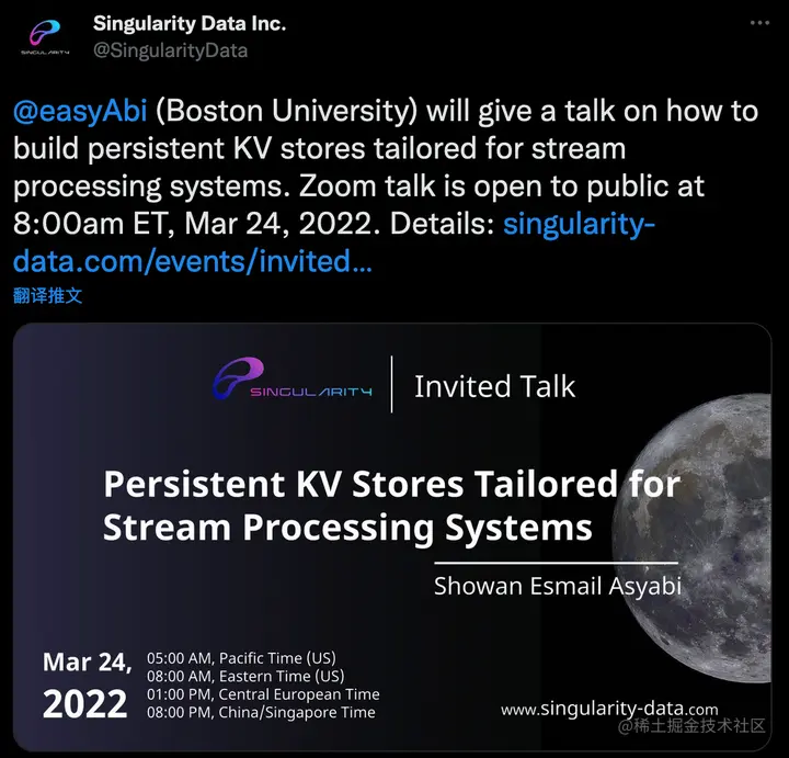 - Singularity Data 宣传邀请 Showan 给 talk 的推文: twitter.com/Singularity…