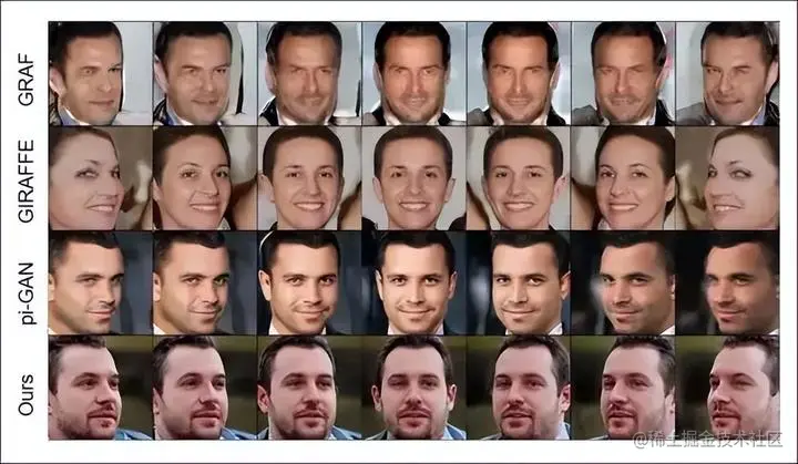 与NeRF不同,GAN天然就有个几乎致命的劣势。GAN的潜在空间并不会自然包含对3D信息的理解。