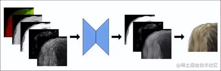 训练数据集,则是通过以随机距离、姿势以及不同的照明条件,来渲染数百张直发和波浪发型的实际图片而生成的。