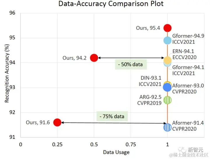 更令人印象深刻的是,如图6所示,作者用50%的数据可以达到以往SOTA方法100%数据的精度;在仅适用25%数据的情况下(同时使用光流输入),仍得到与其他方法相持平的表现。