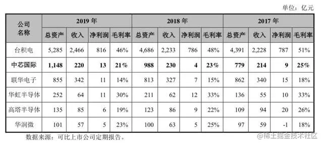 中芯国际选取了台积电、联华电子、华虹半导体、高塔半导体、华润微列为可比公司。从总资产、收入、净利润及毛利率等指标,全方位展现了中芯国际目前的发展状态。