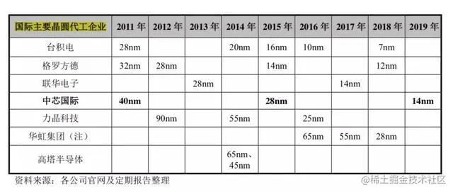 例如,台积电的10nm(纳米)工艺于2016年量产,7nm量产时间是在2018年;格罗方德的12nm工艺同样于2018年实现量产;联华电子的14nm工艺量产时间为2017年;中芯国际的14nm技术则于2019年进入量产,与最先进晶圆厂仍存在着不小差距。
