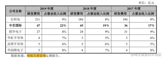 这一研发费率平远高于同行业可比公司。同期可比公司研发费用率分别为7.21%、6.9%、7.57%,中芯国际逐年走高的研发费用率在2019年几乎相当于同行业的3倍。并且高位的研发投入还将继续。