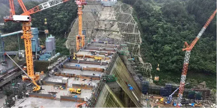 修建大坝,是一项错综复杂的工作,也是劳动密集型作业。工人们首先用石料堆成的三角形的“山”,然后处理大坝地基,最后进行浇筑。 所谓浇筑,就是在拦截水流的一面,建造混凝土防渗面板,以防止河水渗入堆积的石料之间的缝隙。浇筑进入到后半段,往往需要用混凝土搅拌机不断地将混凝土注入滑升模板,从下往上建造厚厚的混凝土防渗面板,最后,让混凝土凝固。