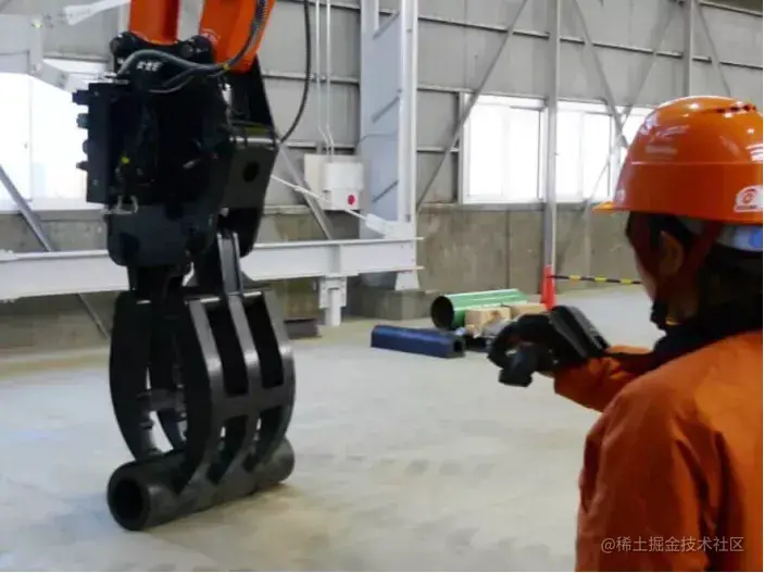 清水建设的钢筋混凝土辅助机器人可以协助工人举起200公斤的钢筋棍棒。