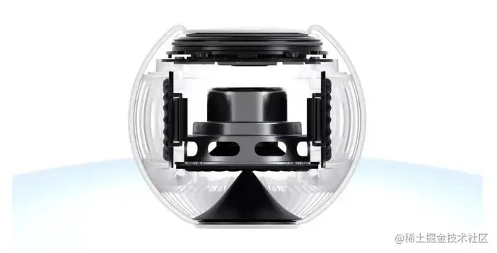 与全尺寸HomePod一样,HomePod mini仍然具有黑白两种网眼织物外观,顶部还有一个小显示屏,可显示Siri波形和音量控件。不过,Mini 更像是短球,而不是椭圆形设计,音箱底部有一个主驱动器,两个无源辐射器和一个「声波导」。