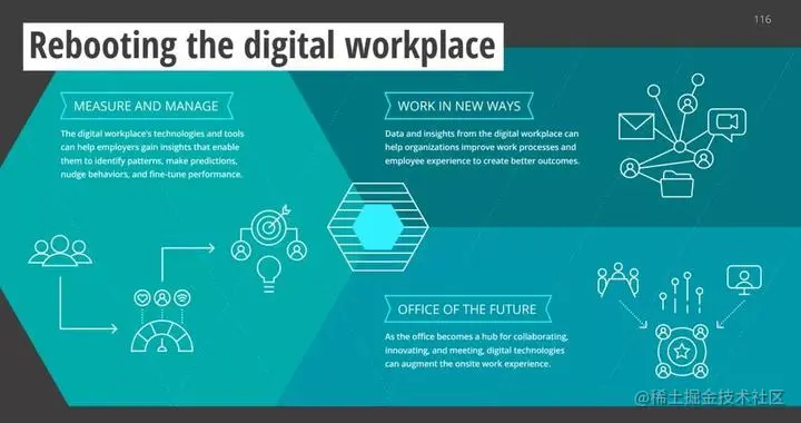 如果企业去接受线上办公的积极方面,包括使用数字化办公工具、利用平台生成的数据,企业或许能够克服线上办公的缺陷和不确定性。未来随着工作空间的发展,企业可以利用现在线上办公的数据和经验创建繁荣、高效、低成本的办公室,并与远程体验无缝交织在一起。