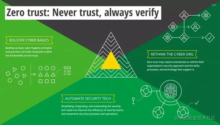数据、应用程序、工作负载和其他资源被视为单独的、可管理的单元,根据最小特权原则提供访问。正确实现零信任安全架构所需的自动化和工程可以帮助加强安全态势、简化安全管理、改善最终用户体验,并支持现代企业环境。不过,向零信任的转变可能需要大量的努力和规划,包括解决基本的网络安全问题,自动化手动流程,以及根据安全组织、技术领域和企业本身的转型变化进行规划。