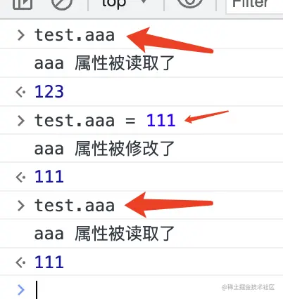 console.log('aaa 属性被读取了');