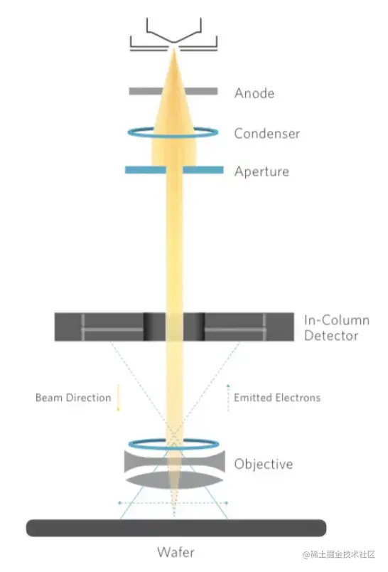 电子束量测利用电子的特性,来自电子束的电子撞击并穿透样品表面,然后电子散射并反弹回工具中的检测器。