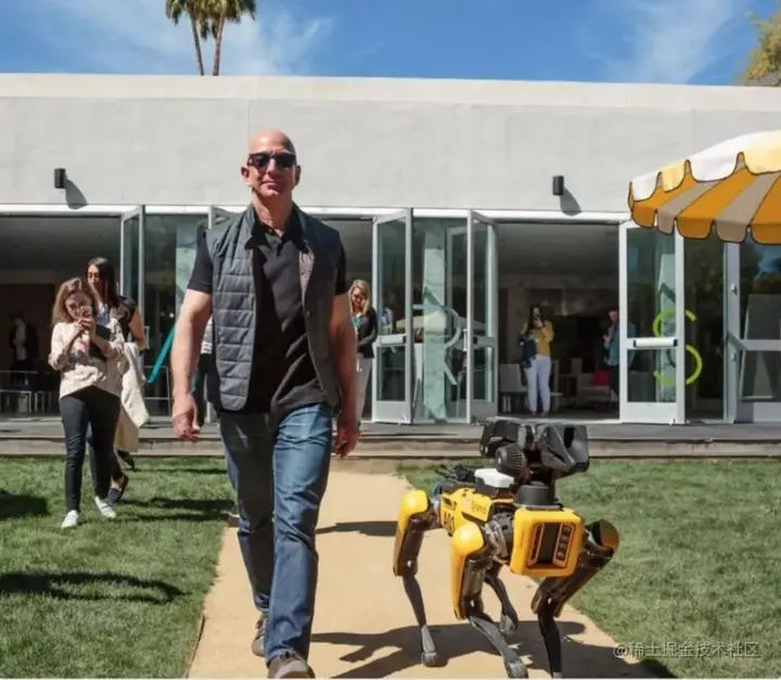 在2018年的亚马逊Re:MARS 大会上,贝佐斯骄傲地发了个推特,「遛我的新狗」,瞬间吸引了过2万点赞。狗子它「爸」、波士顿动力 CEO Raibert现场表示,公司的头牌明星,四足机器狗 SpotMini 将要正式开卖。