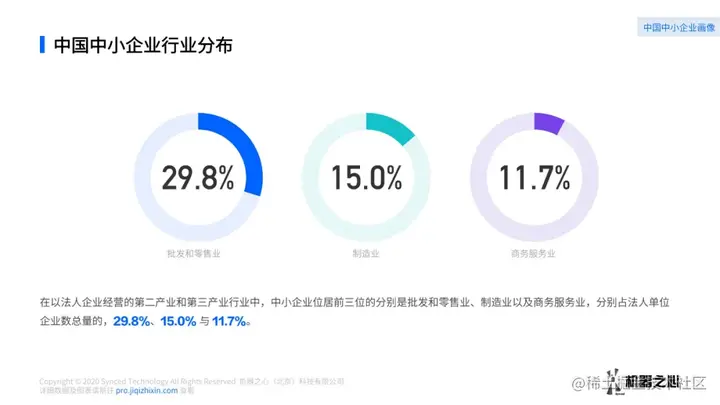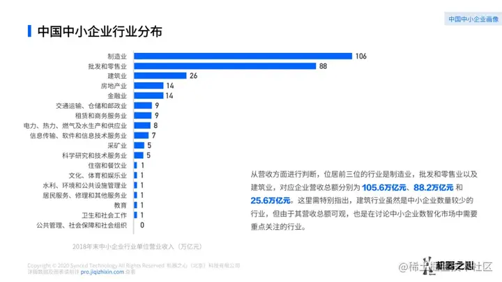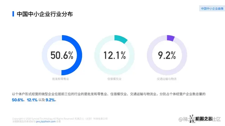 - 中小企业聚集行业智能+:零售批发、餐饮住宿、制造业、生活服务、交通运输、建筑业