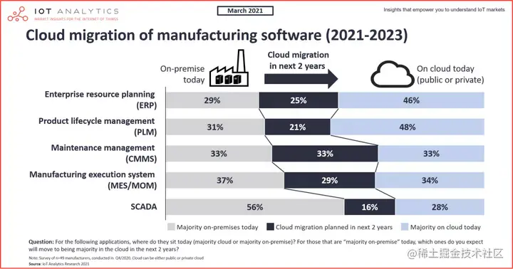IoT Analytics在2020年第四季度对49家制造商进行的调查显示,制造软件上云的趋势正在加速和扩大。
