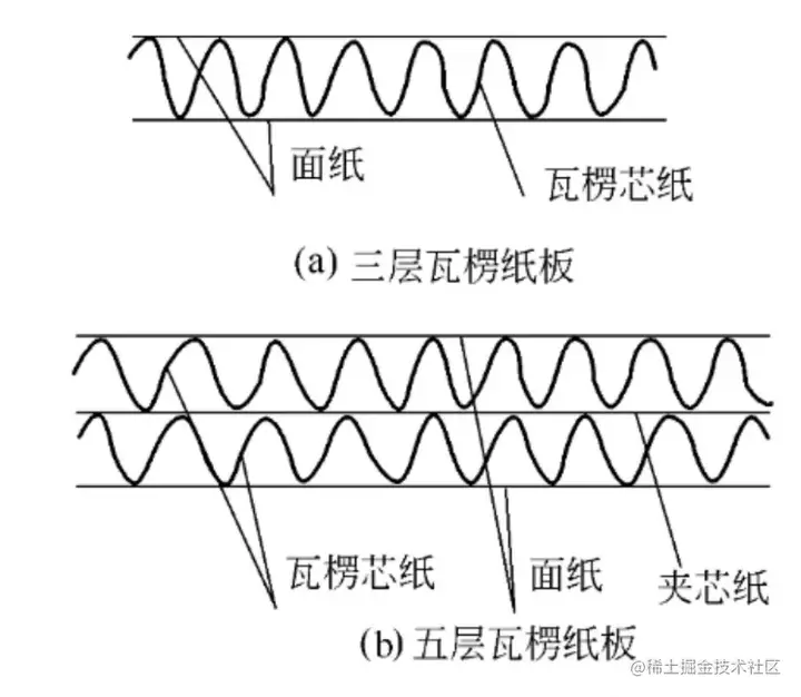 瓦楞纸板结构示意图。